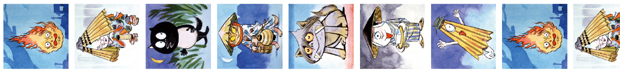ラッコ、足長ばち、かまきり、おひなさま、シュロのバッタ、